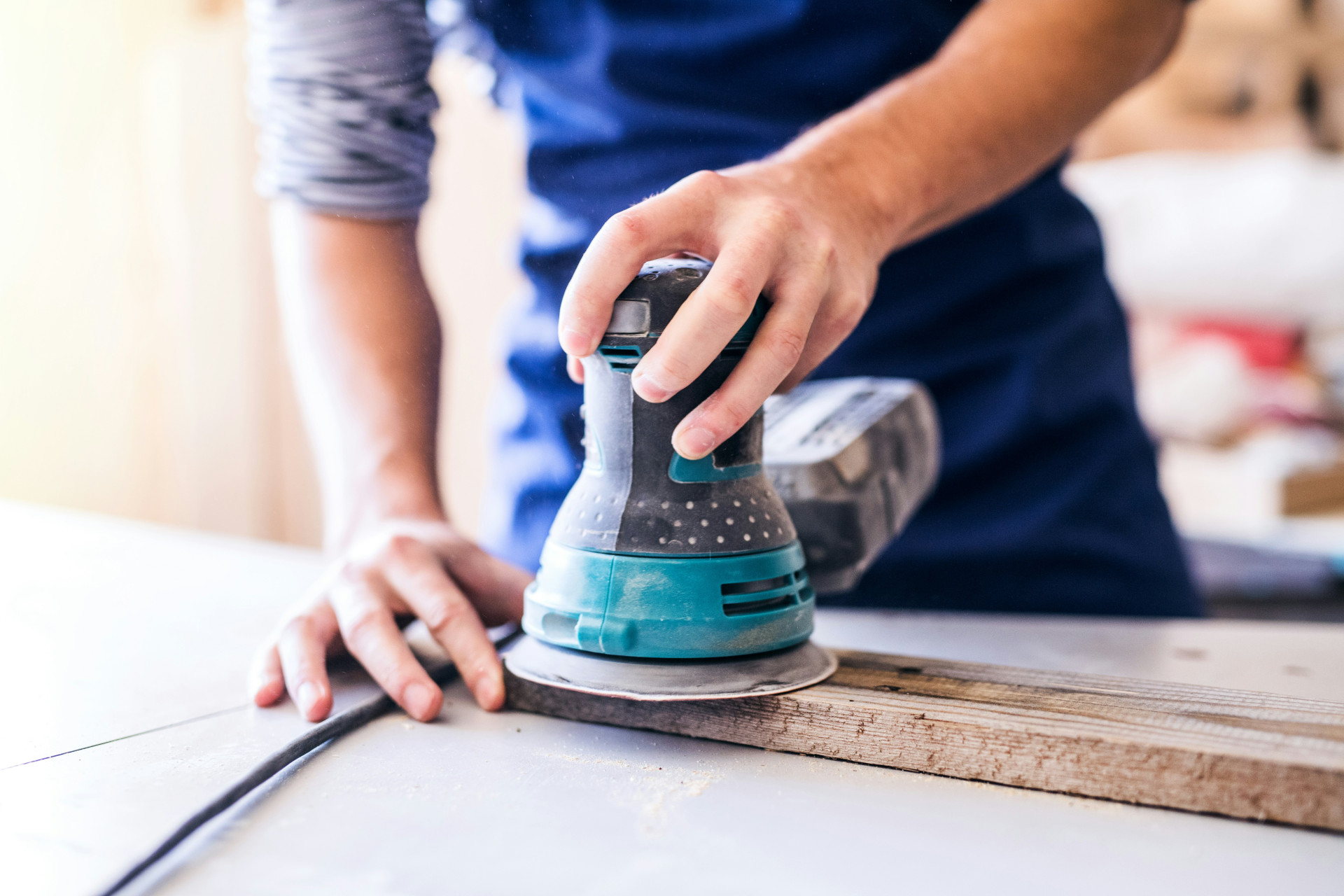 - Leicht anschleifen. Mit feinem Schleifpapier (Körnung 180–240) entfernen Sie kleine Unebenheiten und öffnen die Poren für das Öl.